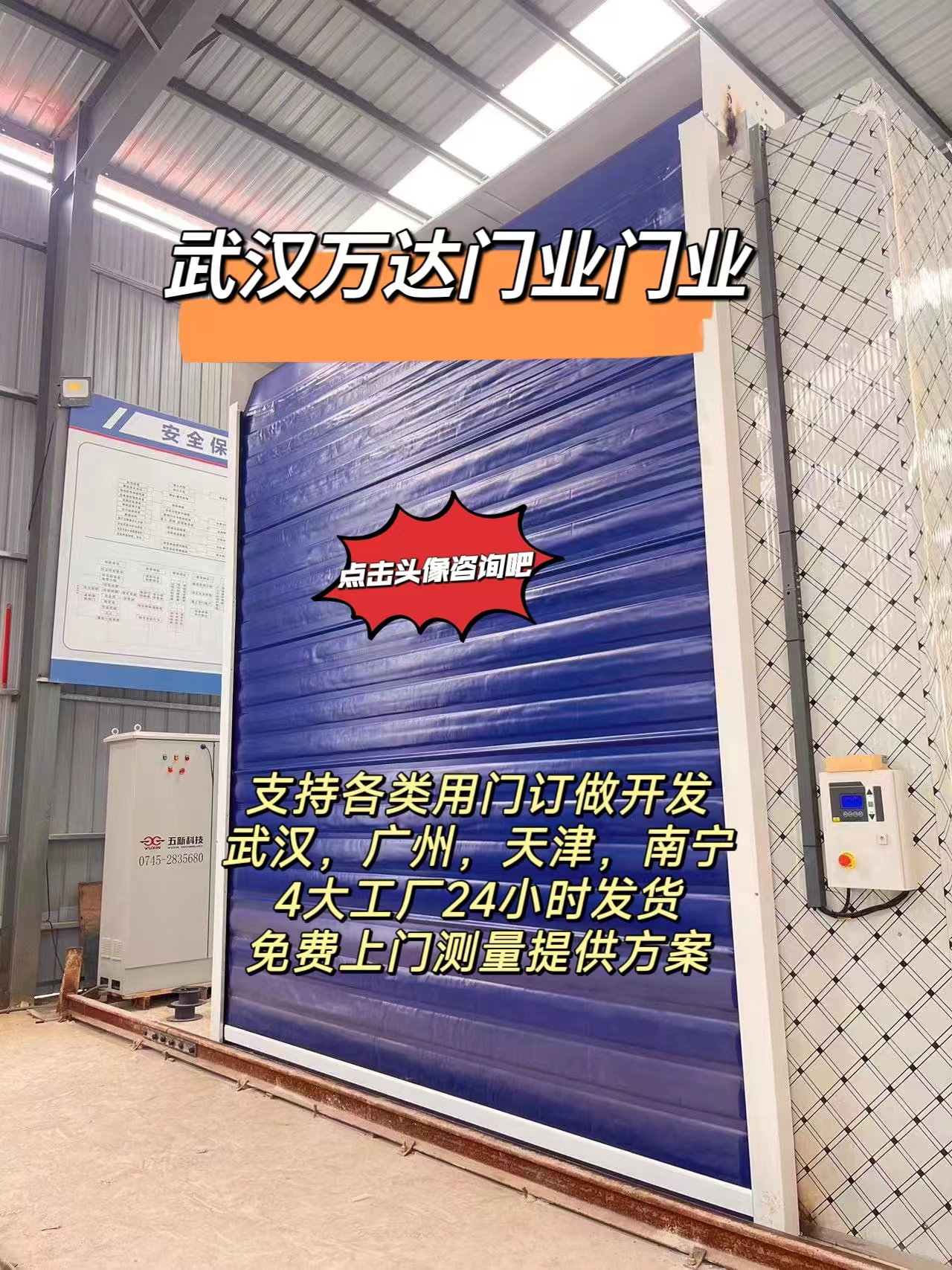 1、快速双层保温管城回族窑门,自动感应管城回族窑门,输送线管城回族卷帘门快速双层保温管城回族窑门 武汉万达门业全国制作安装 13871127817